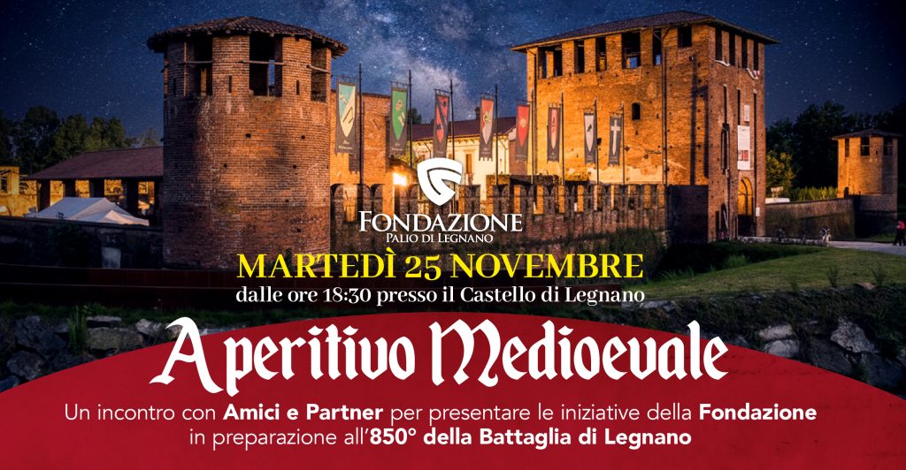 Siamo lieti di ospitarla all’evento “Aperitivo Medioevale” che si terrà martedì 25 novembre dalle ore 18.30 presso il Castello Visconteo di Legnano in v.le Pietro Toselli.